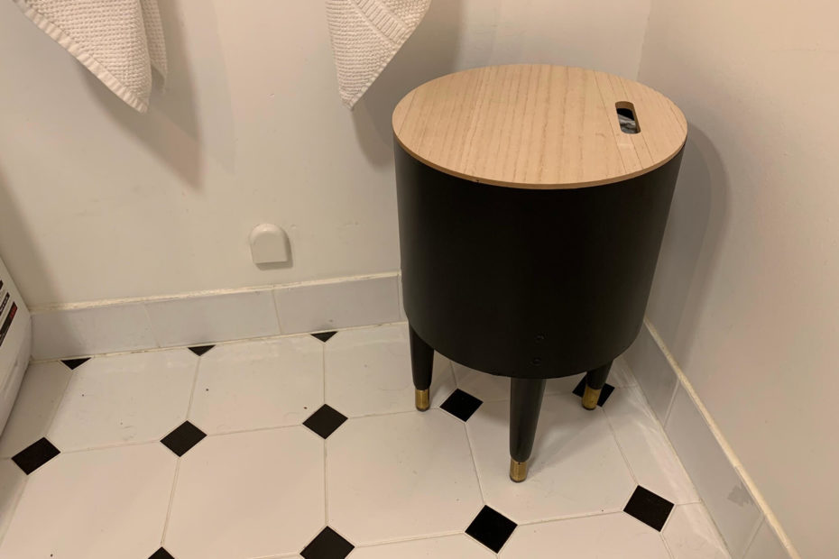 Viser seg at en søppelbøtte man også kan sitte på, er umulig å finne. På badet trengte vi en pusse tenner- og tømme vaskemaskinen-stol. Den dobler også som bosspann/søppelbøtte. Fort gjort, laget av en boks fra Jysk og ben fra en gjenbrukt kommode (se prosjektet… Read More »Bosstol